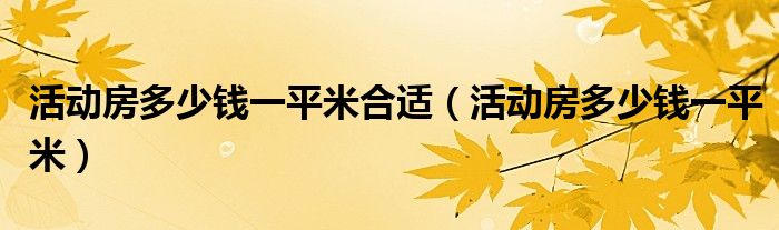 关于活动房多少钱一平米合适,活动房多少钱一平米这个很多人还不知道,今天菲菲来为大家解答以上的问题,现在让我们一起来看看吧!