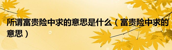 关于所谓富贵险中求的意思是什么,富贵险中求的意思这个很多人还不知道,今天菲菲来为大家解答以上的问题,现在让我们一起来看看吧!