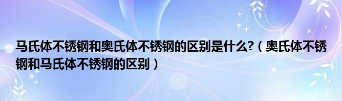 关于马氏体不锈钢和奥氏体不锈钢的区别是什么?,奥氏体不锈钢和马氏体不锈钢的区别这个很多人还不知道,今天菲菲来为大家解答以上的问题,现在让我们一起来看看吧!