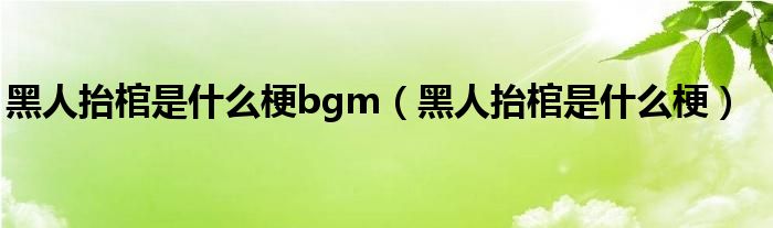 黑人抬棺是什么梗bgm,黑人抬棺是什么梗很多人还不知道,乐乐来为大家解答以上问题,现在让我们一起来看看吧!