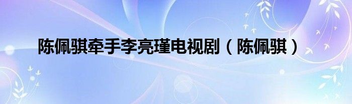关于陈佩骐牵手李亮瑾电视剧,陈佩骐这个很多人还不知道,今天菲菲来为大家解答以上的问题,现在让我们一起来看看吧!