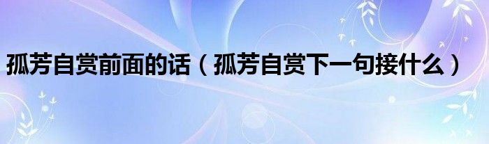 大家好,小晋来为大家解答以下问题,关于孤芳自赏前面的话,孤芳自赏下一句接什么很多人还不知道,今天让我们一起来看看吧!