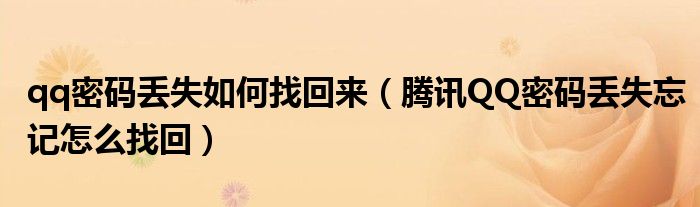 大家好,今天小悦来为大家解答以上问题。qq密码丢失如何找回来,腾讯QQ密码丢失忘记怎么找回很多人还不知道,现在让我们一起来看看吧!