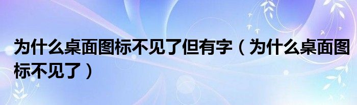 大家好,雨雨来为大家解答以上问题,为什么桌面图标不见了但有字,为什么桌面图标不见了很多人还不知道,现在让我们一起来看看吧!
