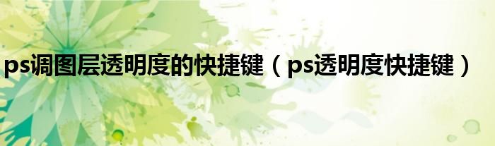关于ps调图层透明度的快捷键,ps透明度快捷键这个很多人还不知道,今天菲菲来为大家解答以上的问题,现在让我们一起来看看吧!