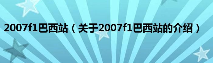 大家好,今天小乐来为大家解答以上的问题。2007f1巴西站,关于2007f1巴西站的介绍很多人还不知道,现在让我们一起来看看吧!