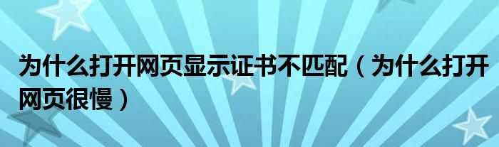 大家好,雨雨来为大家解答以上问题,为什么打开网页显示证书不匹配,为什么打开网页很慢很多人还不知道,现在让我们一起来看看吧!