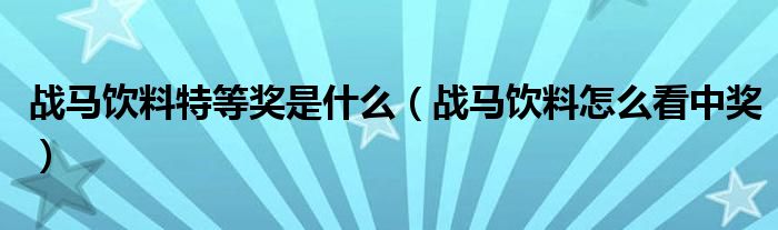 大家好,小晋来为大家解答以下问题,关于战马饮料特等奖是什么,战马饮料怎么看中奖很多人还不知道,今天让我们一起来看看吧!