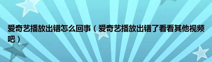 大家好,雨雨来为大家解答以上问题,爱奇艺播放出错怎么回事,爱奇艺播放出错了看看其他视频吧很多人还不知道,现在让我们一起来看看吧!