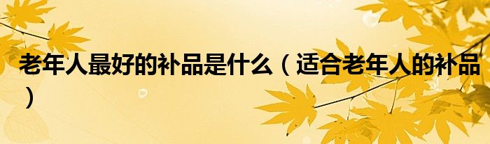 关于老年人最好的补品是什么,适合老年人的补品这个很多人还不知道,今天菲菲来为大家解答以上的问题,现在让我们一起来看看吧!
