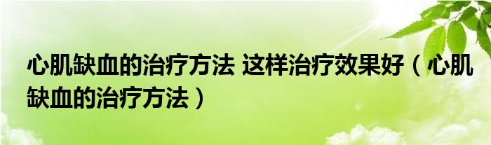 关于心肌缺血的治疗方法 这样治疗效果好,心肌缺血的治疗方法这个很多人还不知道,今天菲菲来为大家解答以上的问题,现在让我们一起来看看吧!