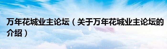 大家好,今天小乐来为大家解答以上的问题。万年花城业主论坛,关于万年花城业主论坛的介绍很多人还不知道,现在让我们一起来看看吧!