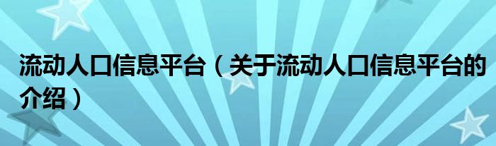 大家好,今天小乐来为大家解答以上的问题。流动人口信息平台,关于流动人口信息平台的介绍很多人还不知道,现在让我们一起来看看吧!