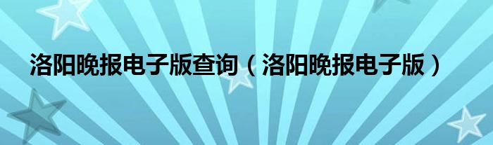 关于洛阳晚报电子版查询,洛阳晚报电子版这个很多人还不知道,今天菲菲来为大家解答以上的问题,现在让我们一起来看看吧!