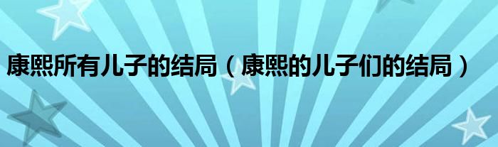 关于康熙所有儿子的结局,康熙的儿子们的结局这个很多人还不知道,今天菲菲来为大家解答以上的问题,现在让我们一起来看看吧!