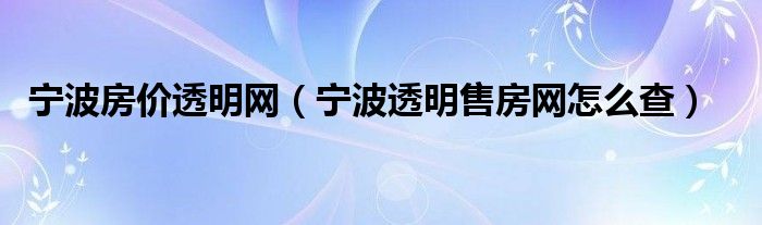 关于宁波房价透明网,宁波透明售房网怎么查这个很多人还不知道,今天菲菲来为大家解答以上的问题,现在让我们一起来看看吧!