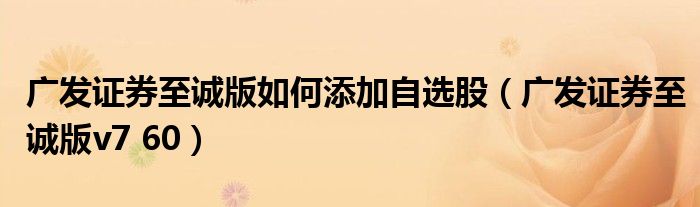 关于广发证券至诚版如何添加自选股,广发证券至诚版v7 60这个很多人还不知道,今天菲菲来为大家解答以上的问题,现在让我们一起来看看吧!