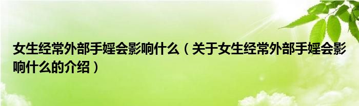 大家好,小都来为大家解答以上的问题。女生经常外部手婬会影响什么,关于女生经常外部手婬会影响什么的介绍很多人还不知道,现在让我们一起来看看吧!