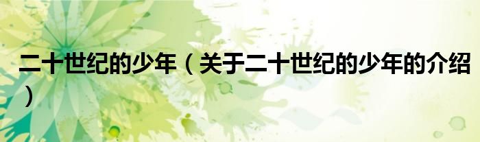 大家好,小都来为大家解答以上的问题。二十世纪的少年,关于二十世纪的少年的介绍很多人还不知道,现在让我们一起来看看吧!