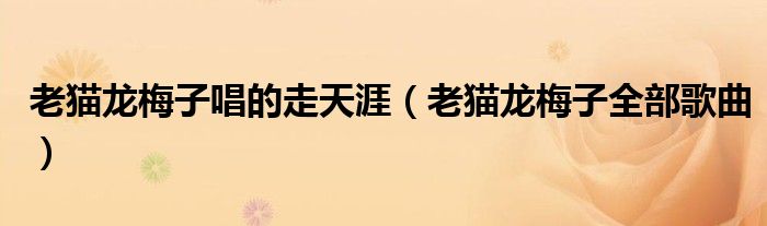老猫龙梅子唱的走天涯(老猫龙梅子全部歌曲)