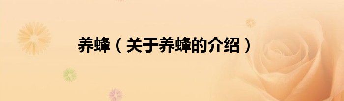 大家好,小都来为大家解答以上的问题。养蜂,关于养蜂的介绍很多人还不知道,现在让我们一起来看看吧!