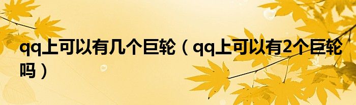 大家好,小晋来为大家解答以下问题,关于qq上可以有几个巨轮,qq上可以有2个巨轮吗很多人还不知道,今天让我们一起来看看吧!
