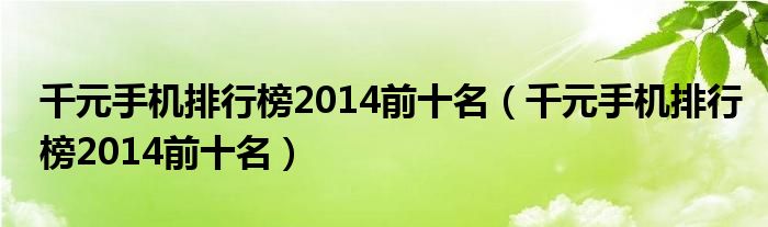 千元手机排行榜2014前十名,千元手机排行榜2014前十名很多人还不知道,乐乐来为大家解答以上问题,现在让我们一起来看看吧!