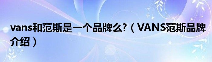 大家好,小源来为大家解答以上问题。vans和范斯是一个品牌么?,VANS范斯品牌介绍很多人还不知道,现在让我们一起来看看吧!