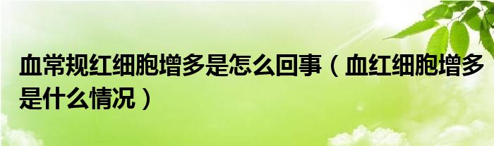 大家好,linda来为大家解答以上的问题。血常规红细胞增多是怎么回事,血红细胞增多是什么情况很多人还不知道,现在让我们一起来看看吧!