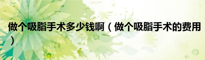 大家好,linda来为大家解答以上的问题。做个吸脂手术多少钱啊,做个吸脂手术的费用很多人还不知道,现在让我们一起来看看吧!