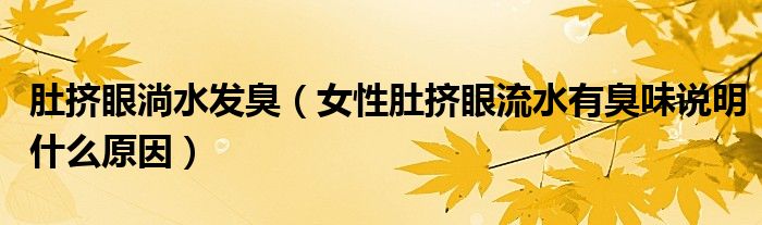 大家好,linda来为大家解答以上的问题。肚挤眼淌水发臭,女性肚挤眼流水有臭味说明什么原因很多人还不知道,现在让我们一起来看看吧!
