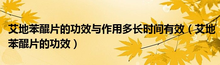 大家好,linda来为大家解答以上的问题。艾地苯醌片的功效与作用多长时间有效,艾地苯醌片的功效很多人还不知道,现在让我们一起来看看吧!