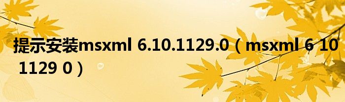 大家好,雨雨来为大家解答以上问题,提示安装msxml 6.10.1129.0,msxml 6 10 1129 0很多人还不知道,现在让我们一起来看看吧!
