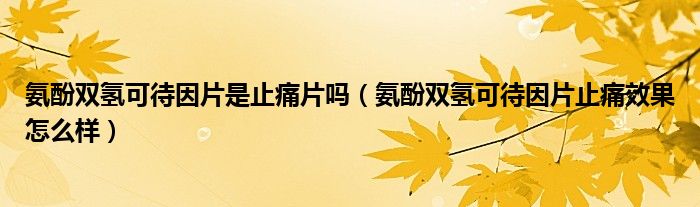 大家好,linda来为大家解答以上的问题。氨酚双氢可待因片是止痛片吗,氨酚双氢可待因片止痛效果怎么样很多人还不知道,现在让我们一起来看看吧!