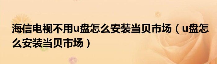 关于海信电视不用u盘怎么安装当贝市场,u盘怎么安装当贝市场这个很多人还不知道,今天菲菲来为大家解答以上的问题,现在让我们一起来看看吧!