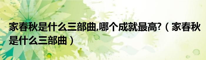 大家好,小晋来为大家解答以下问题,关于家春秋是什么三部曲,哪个成就最高?,家春秋是什么三部曲很多人还不知道,今天让我们一起来看看吧!