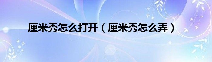 厘米秀怎么打开(厘米秀怎么弄)