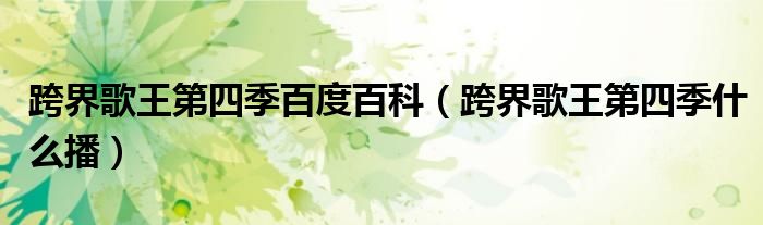 大家好,小晋来为大家解答以下问题,关于跨界歌王第四季百度百科,跨界歌王第四季什么播很多人还不知道,今天让我们一起来看看吧!