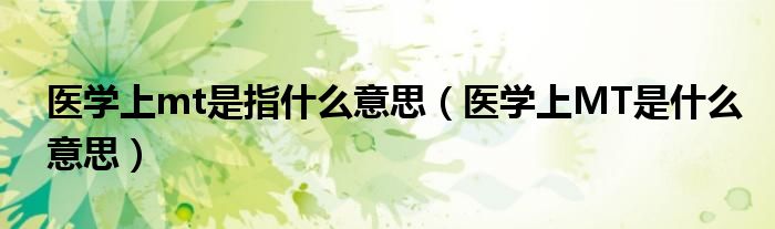 大家好,linda来为大家解答以上的问题。医学上mt是指什么意思,医学上MT是什么意思很多人还不知道,现在让我们一起来看看吧!
