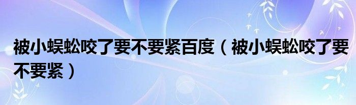 大家好,linda来为大家解答以上的问题。被小蜈蚣咬了要不要紧百度,被小蜈蚣咬了要不要紧很多人还不知道,现在让我们一起来看看吧!