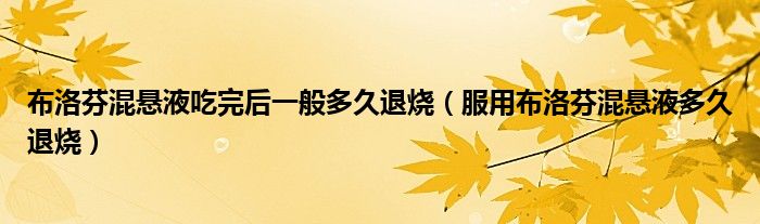 1、服用布洛芬混悬液后,一般需要一个小时左右才能退烧。