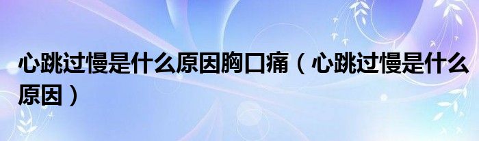 大家好,linda来为大家解答以上的问题。心跳过慢是什么原因胸口痛,心跳过慢是什么原因很多人还不知道,现在让我们一起来看看吧!
