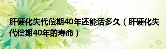 大家好,linda来为大家解答以上的问题。肝硬化失代偿期40年还能活多久,肝硬化失代偿期40年的寿命很多人还不知道,现在让我们一起来看看吧!