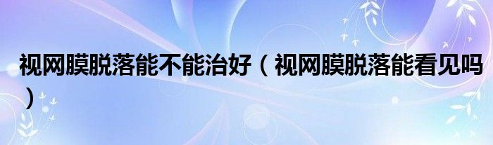 大家好,linda来为大家解答以上的问题。视网膜脱落能不能治好,视网膜脱落能看见吗很多人还不知道,现在让我们一起来看看吧!