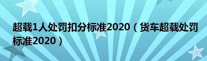 大家好,小常来为大家解答以下问题,对于超载1人处罚扣分标准2020,货车超载处罚标准2020很多人还不知道,今天让我们一起来看看吧!