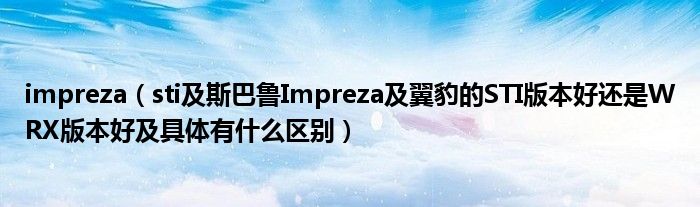 大家好,小常来为大家解答以下问题,对于impreza,sti及斯巴鲁Impreza及翼豹的STI版本好还是WRX版本好及具体有什么区别很多人还不知道,今天让我们一起来看看吧!
