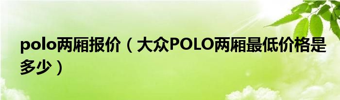 大家好,小常来为大家解答以下问题,对于polo两厢报价,大众POLO两厢最低价格是多少很多人还不知道,今天让我们一起来看看吧!