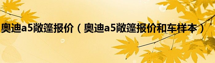 大家好,小常来为大家解答以下问题,对于奥迪a5敞篷报价,奥迪a5敞篷报价和车样本很多人还不知道,今天让我们一起来看看吧!
