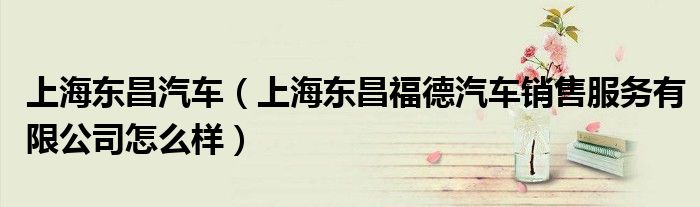 大家好,小常来为大家解答以下问题,对于上海东昌汽车,上海东昌福德汽车销售服务有限公司怎么样很多人还不知道,今天让我们一起来看看吧!