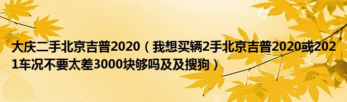 大家好,小常来为大家解答以下问题,对于大庆二手北京吉普2020,我想买辆2手北京吉普2020或2021车况不要太差3000块够吗及及搜狗很多人还不知道,今天让我们一起来看看吧!